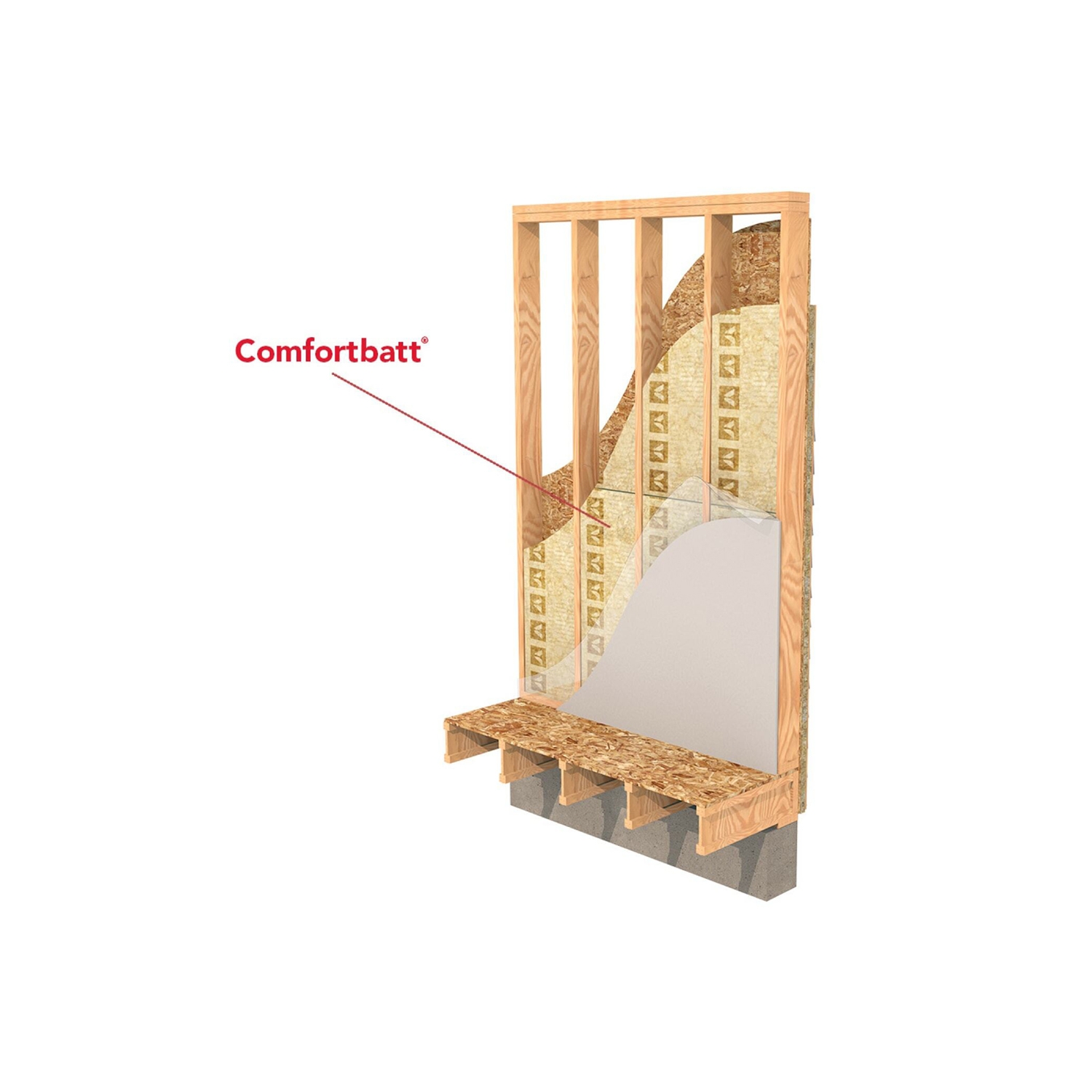 Interior-insulated assemblies can achieve improved thermal performance by using ROCKWOOL Comfortbatt within the stud cavity as the higher-density batts reduce airflow within the wall cavity, thereby reducing convective losses.
