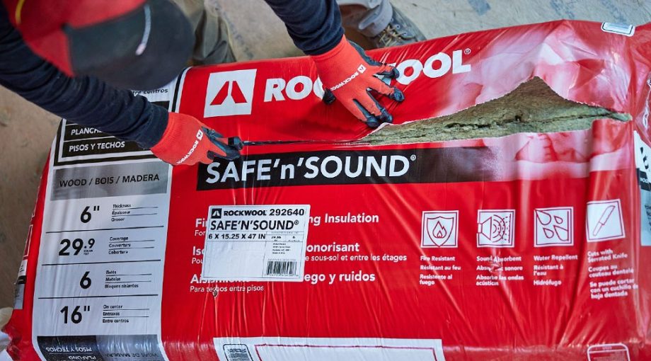Safe'n'Sound is a stone wool batt insulation designed for interior wall partitions, floors and ceilings for wood- and steel-frame construction where superior fire resistance and acoustical performance is required. Unlike thermal insulation, it’s designed specifically for soundproofing interior walls and ceilings between rooms and floors. Made from stone, Safe'n'Sound reduces sound transmission by trapping sound waves and vibrations in the thousands of tiny interconnected spaces created by its unique fiber structure.