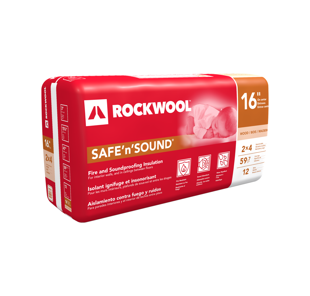 ROCKWOOL Safe'n'Sound is a stone wool batt insulation designed for interior wall partitions, floors and ceilings for wood- and steel-frame construction where superior fire resistance and acoustical performance is required.